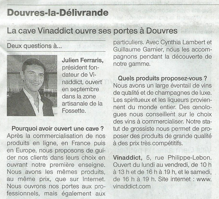 26 Septembre 2016 - Ouverture de la cave Vinaddict dans Ouest France n°21957